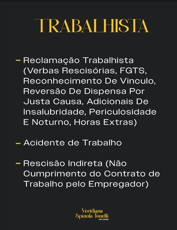 Atuamos com diversas questões envolvendo o mundo do trabalho, oferece orientação jurídica e representação eficaz em uma variedade de questões, incluindo reclamações trabalhistas para verbas rescisórias, FGTS, reconhecimento de vínculo, reversão de dispensa por justa causa, adicional de insalubridade, periculosidade, noturno e horas extras. Além disso, ajudamos em casos de acidentes de trabalho e rescisão indireta quando o empregador não cumpre o contrato.